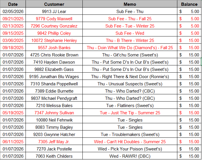 | Cant Hit Doubles | 61 | 5 - 0 - 0 | 5 |